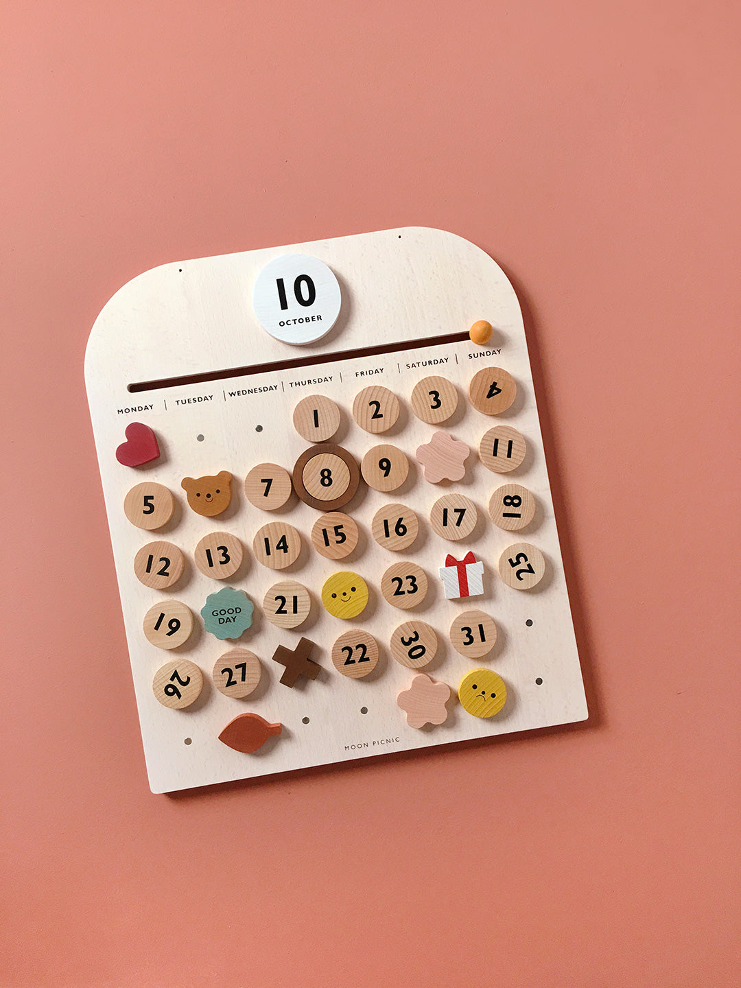 We designed this perpetual calendar to be an object of play, learning and to be of practical assistance for the little one's eventful daily life!