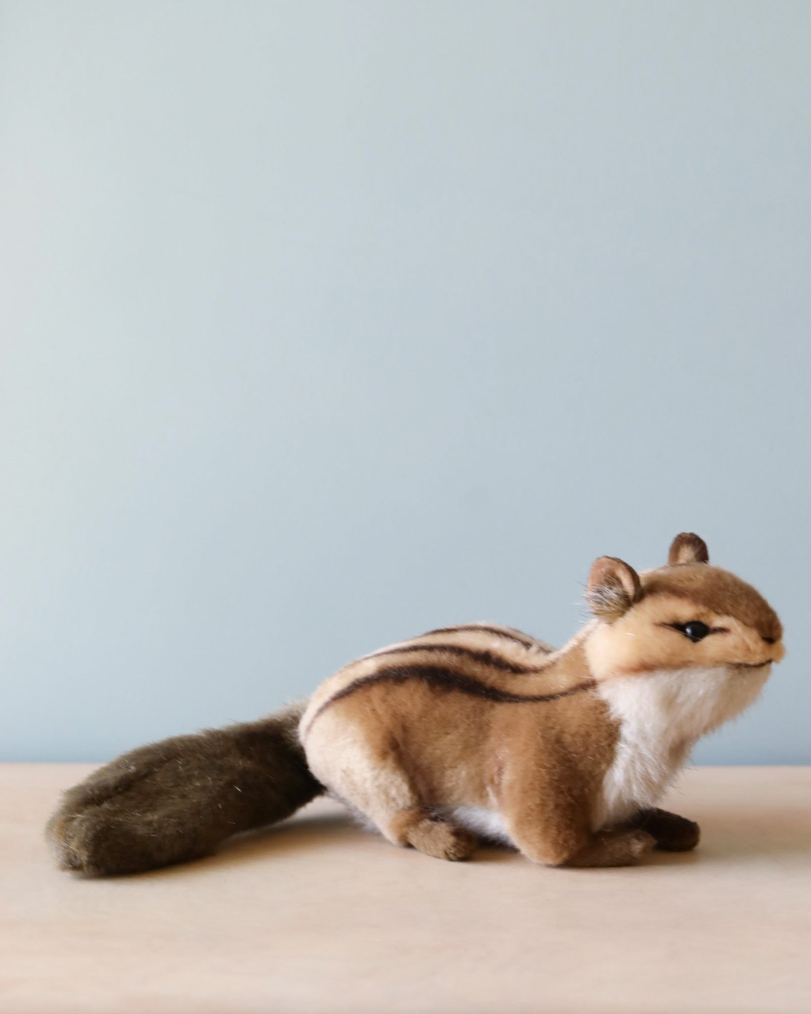 Artisans hand sew the animals "inside out", an old world tradition that results in the mininization of seams, and their bodies are carefully "sculpted" to create "musculature" and "features" like movement in a walking or sitting position that are unique to each creature. On average, there are 42 separate pieces required to make each animal, that must be combined by a team of truly creative artists to create the distinctly realistic features that characterize HANSA animals. (Some animals have as many as 240 different parts!) Each animal is individually hand sewn, to give it a unique "personality", there are more than 860 different fabrics and man-made furs from which the "coat" and "hides" are made, along with over 6000 sets of different eyes, whiskers, claws, noses, and related accessories allocated for creating these wonderful plush animals. Stuffing emphasizes careful attention to the placement of the highest quality man-made materials.
