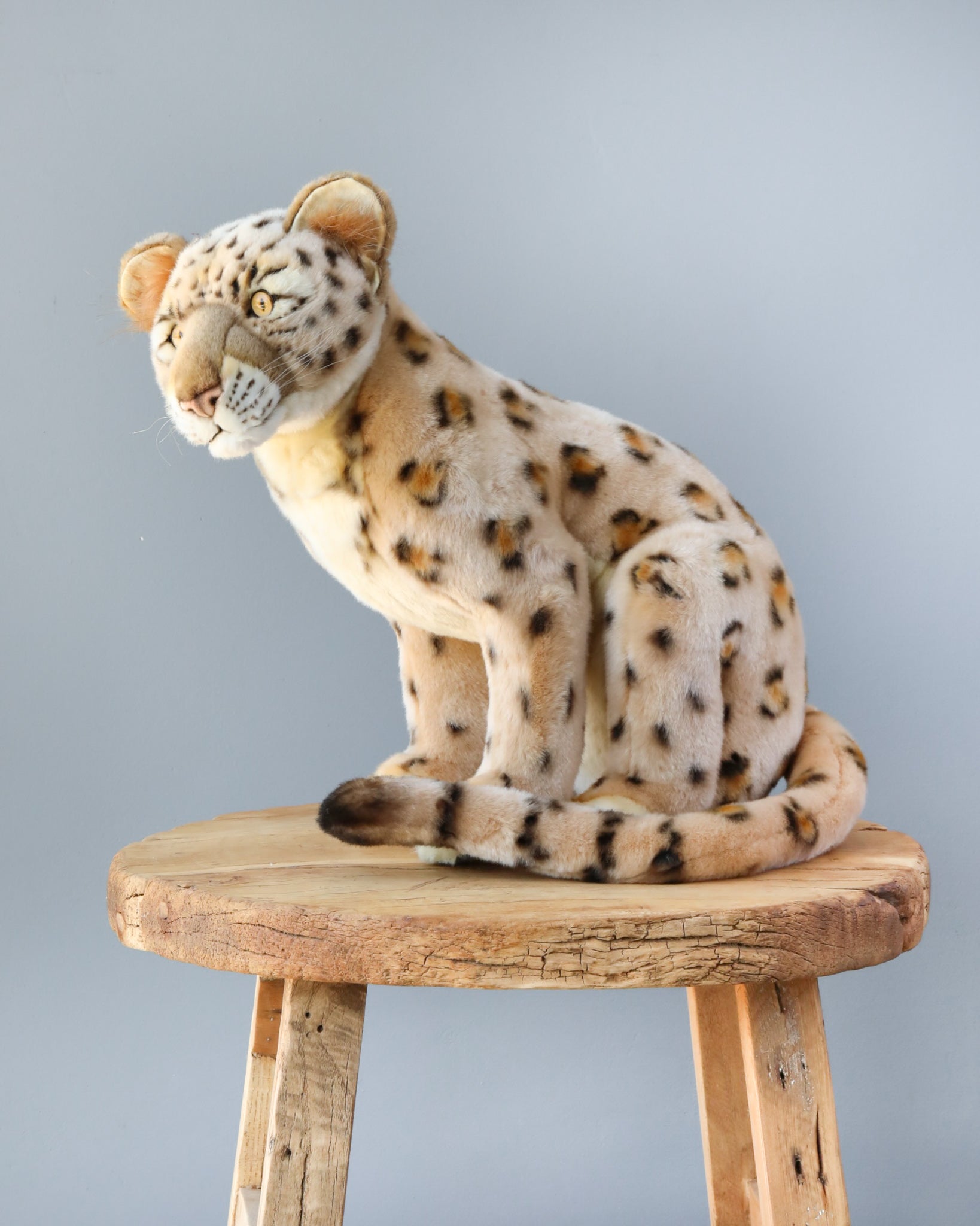 Artisans hand sew the animals "inside out", an old world tradition that results in the mininization of seams, and their bodies are carefully "sculpted" to create "musculature" and "features" like movement in a walking or sitting position that are unique to each creature. On average, there are 42 separate pieces required to make each animal, that must be combined by a team of truly creative artists to create the distinctly realistic features that characterize HANSA animals. (Some animals have as many as 240 different parts!) Each animal is individually hand sewn, to give it a unique "personality", there are more than 860 different fabrics and man-made furs from which the "coat" and "hides" are made, along with over 6000 sets of different eyes, whiskers, claws, noses, and related accessories allocated for creating these wonderful plush animals. Stuffing emphasizes careful attention to the placement of the highest quality man-made materials.