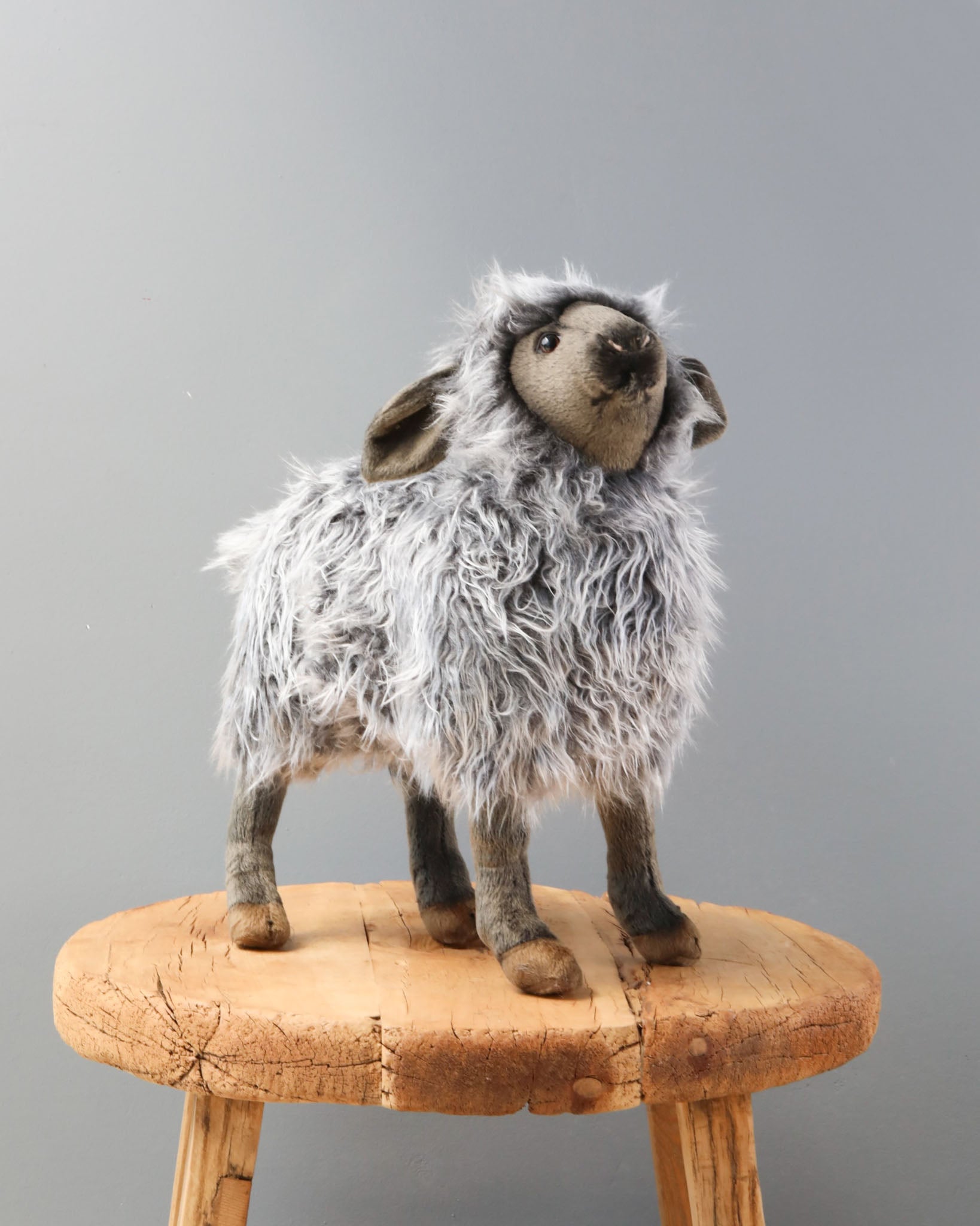 Artisan hand sew the animals "inside out", an old world tradition that results in the mininization of seams, and their bodies are carefully "sculpted" to create "musculature" and "features" like movement in a walking or sitting position that are unique to each creature. On average, there are 42 separate pieces required to make each animal, that must be combined by a team of truly creative artists to create the distinctly realistic features that characterize HANSA animals. (Some animals have as many as 240 different parts!) Each animal is individually hand sewn, to give it a unique "personality", there are more than 860 different fabrics and man-made furs from which the "coat" and "hides" are made, along with over 6000 sets of different eyes, whiskers, claws, noses, and related accessories allocated for creating these wonderful plush animals. Stuffing emphasizes careful attention to the placement of the highest quality man-made materials.